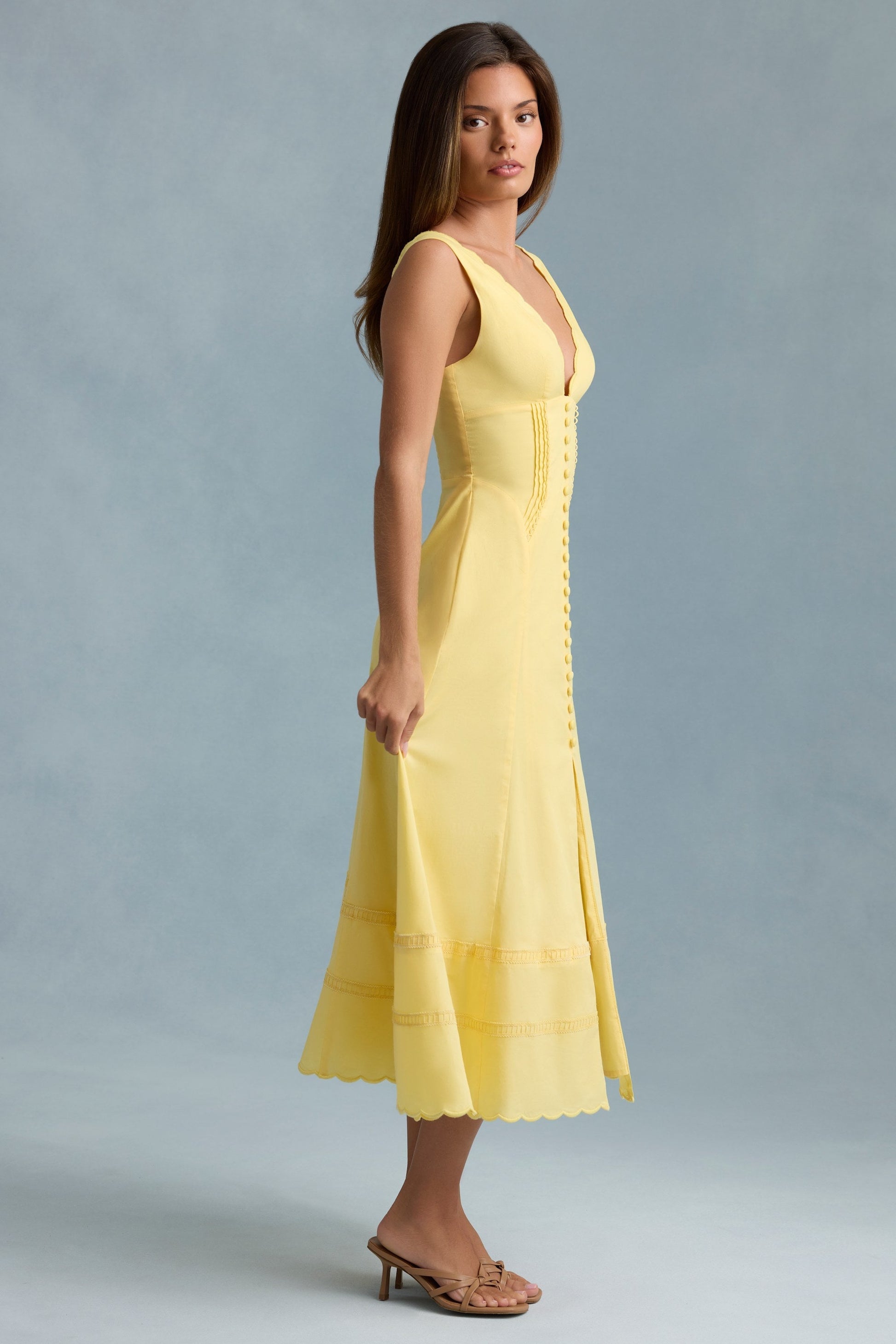 Cotton-Poplin A-Line Midaxi Dress in Pastel Yellow