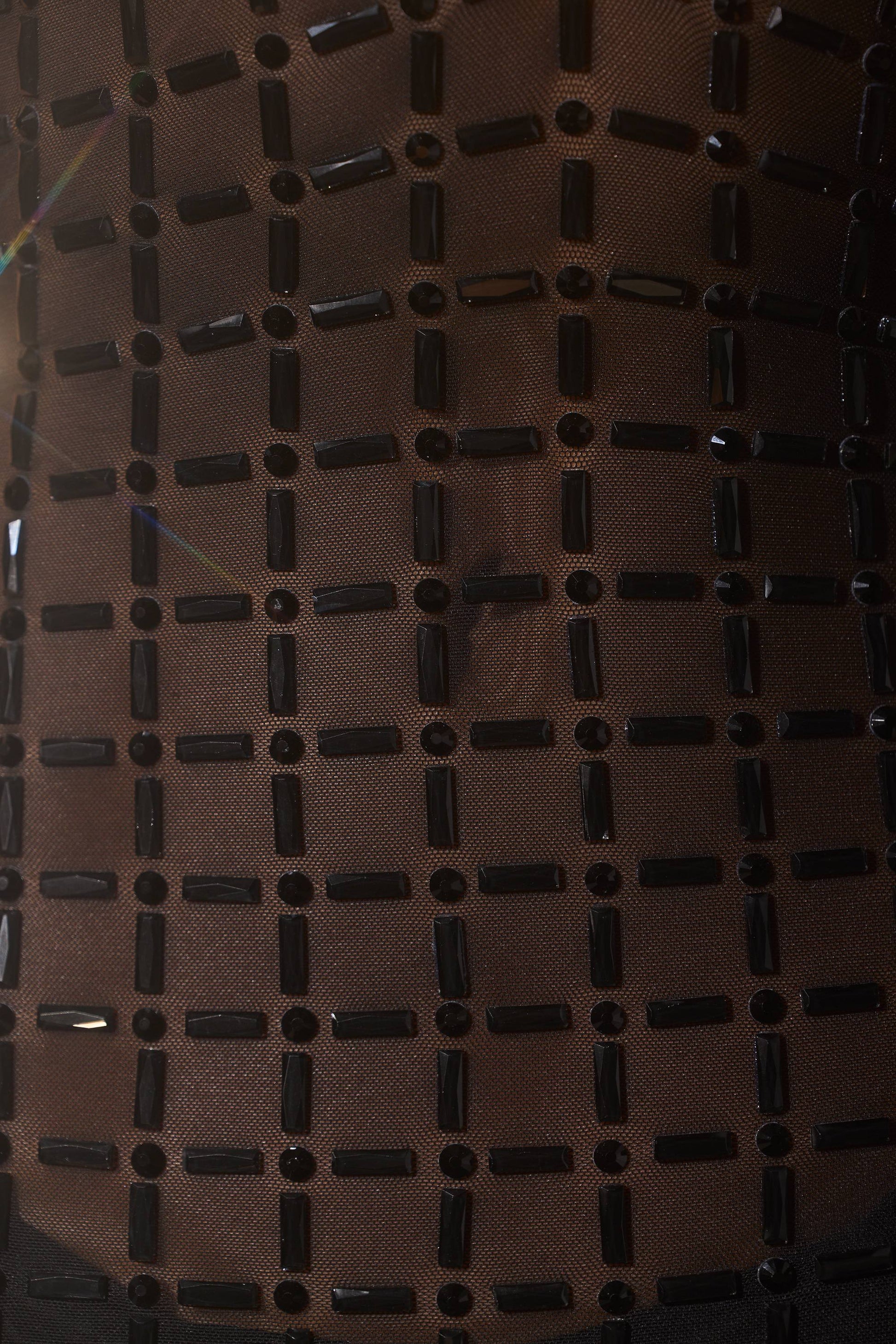 Silhouettes that make them say wow. Crafted from premium, semi-sheer 40D stretch mesh, the Audrey gown is a statement design, cut to a stunning fishtail silhouette with a puddle hem. Framed with a plunge neck, low scooped back and adjustable camisole straps for your perfect amount of support, it’s elevated with high-shine square HOTFIX embellishments, custom-designed in a grid pattern for maximum sparkle.