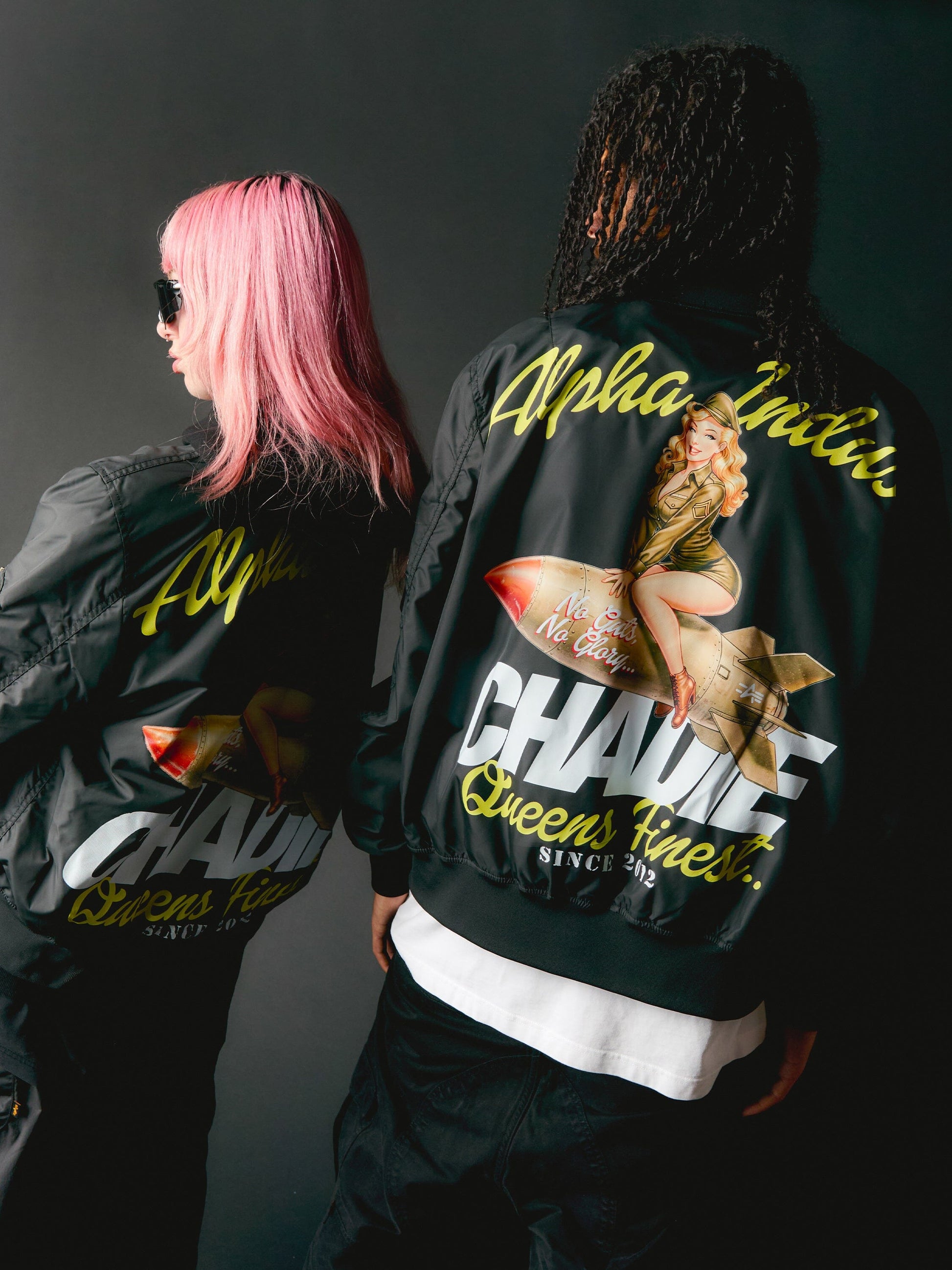 The Chadie x Alpha No Guts No Glory L-2B Flight Jacket features bold graphics screen-printed on the Alpha L-2B Gen II Flight Jacket. Inspired by the spirit of late-night battles and endless campaigns, each graphic flips a love of gaming into statement pieces for the streets.