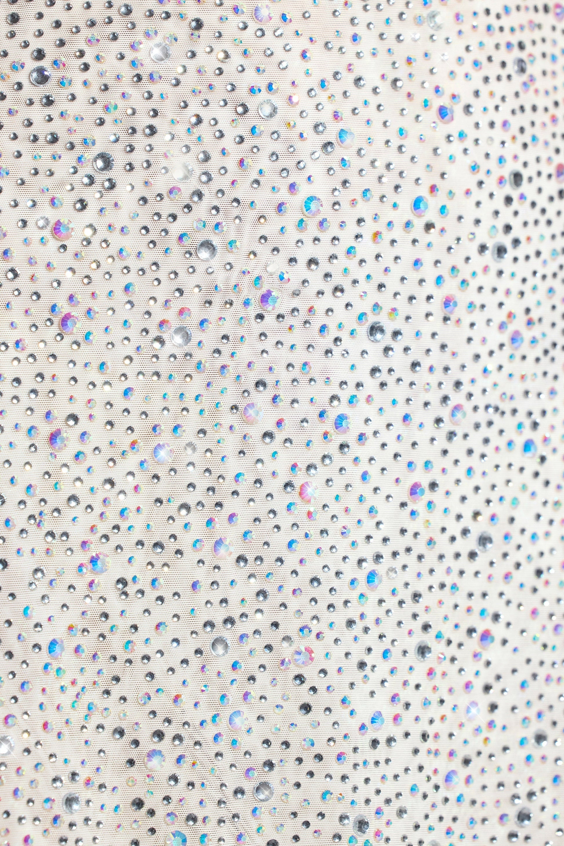 Head-turning silhouettes. Modelled on classic corsetry, the Crystella mini dress features a fitted bodice with moulded three-piece wired cups for enhanced lift and support. It’s crafted to a figure-skimming A-line silhouette from premium 20D stretch mesh with a power mesh lining that offers elevated comfort and coverage. The sweetheart cupped neckline is framed with detachable, adjustable camisole straps and the design is saturated with scores of sparkling HOTFIX embellishments.