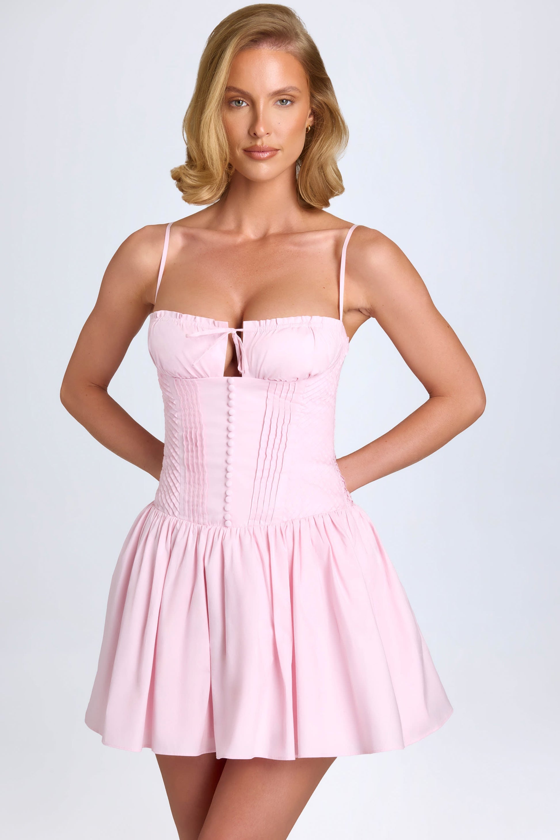 Playful silhouettes for endless summer days. The perfect option for sun-drenched plans, the Dorothea mini dress is crafted from lightweight stretch-cotton poplin to a whimsical silhouette with a fitted bodice and voluminous mini-length skirt. It’s elevated with ruching, pintucked detailing and decorative fabric-covered buttons at the front. The elasticated smocked back and adjustable camisole straps provide enhanced comfort and a custom fit.