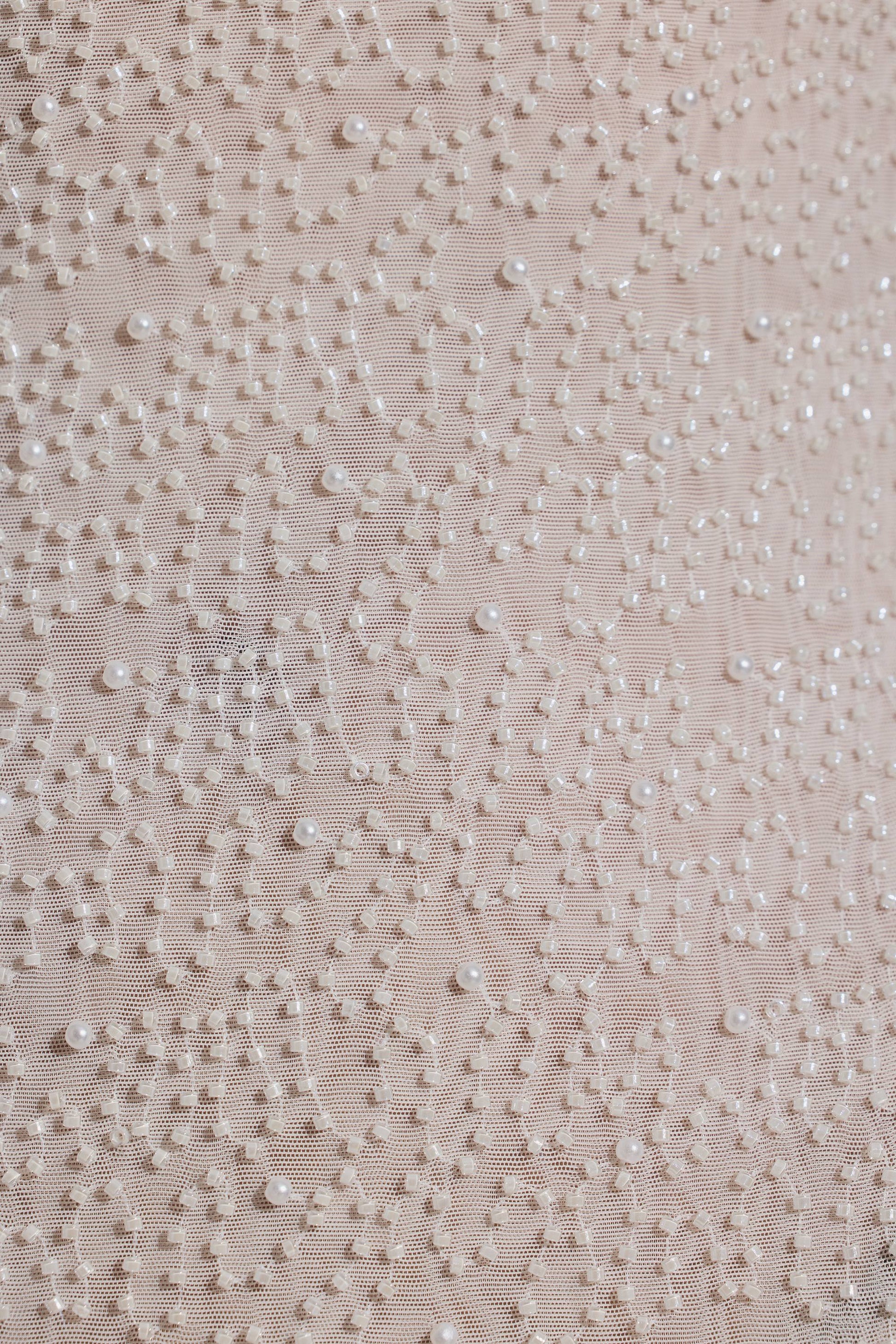 Channel effortless glamour with the Duhamel maxi dress. An iconic silhouette, it’s crafted from our premium dual-layered 20 mesh fabric with a slightly sheer finish that hugs every curve beautifully. Framed with an asymmetric neckline, it’s cut to a fishtail silhouette with a centre back split, low open back and all-over delicate hand-embellished pearls and beads for a statement look.