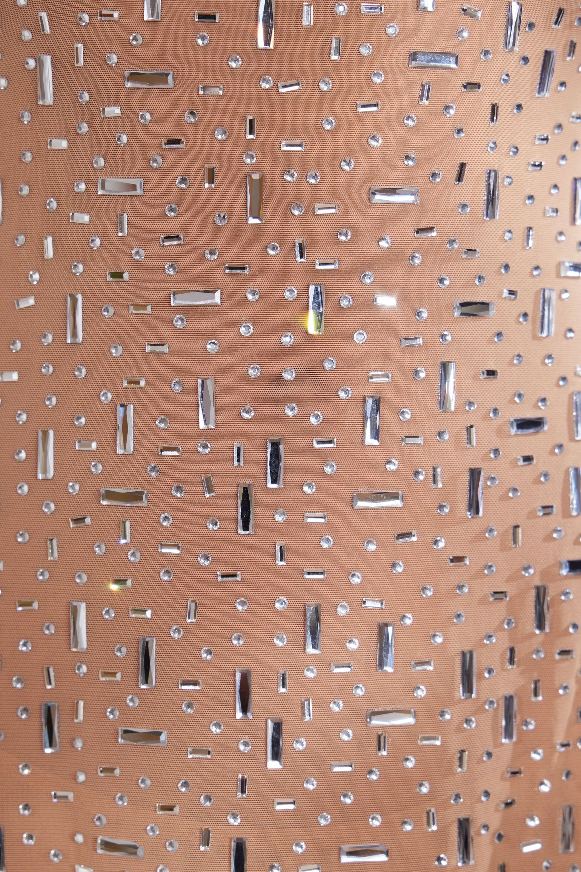 Sheer Embellished Scoop Neck Mini Dress in Almond