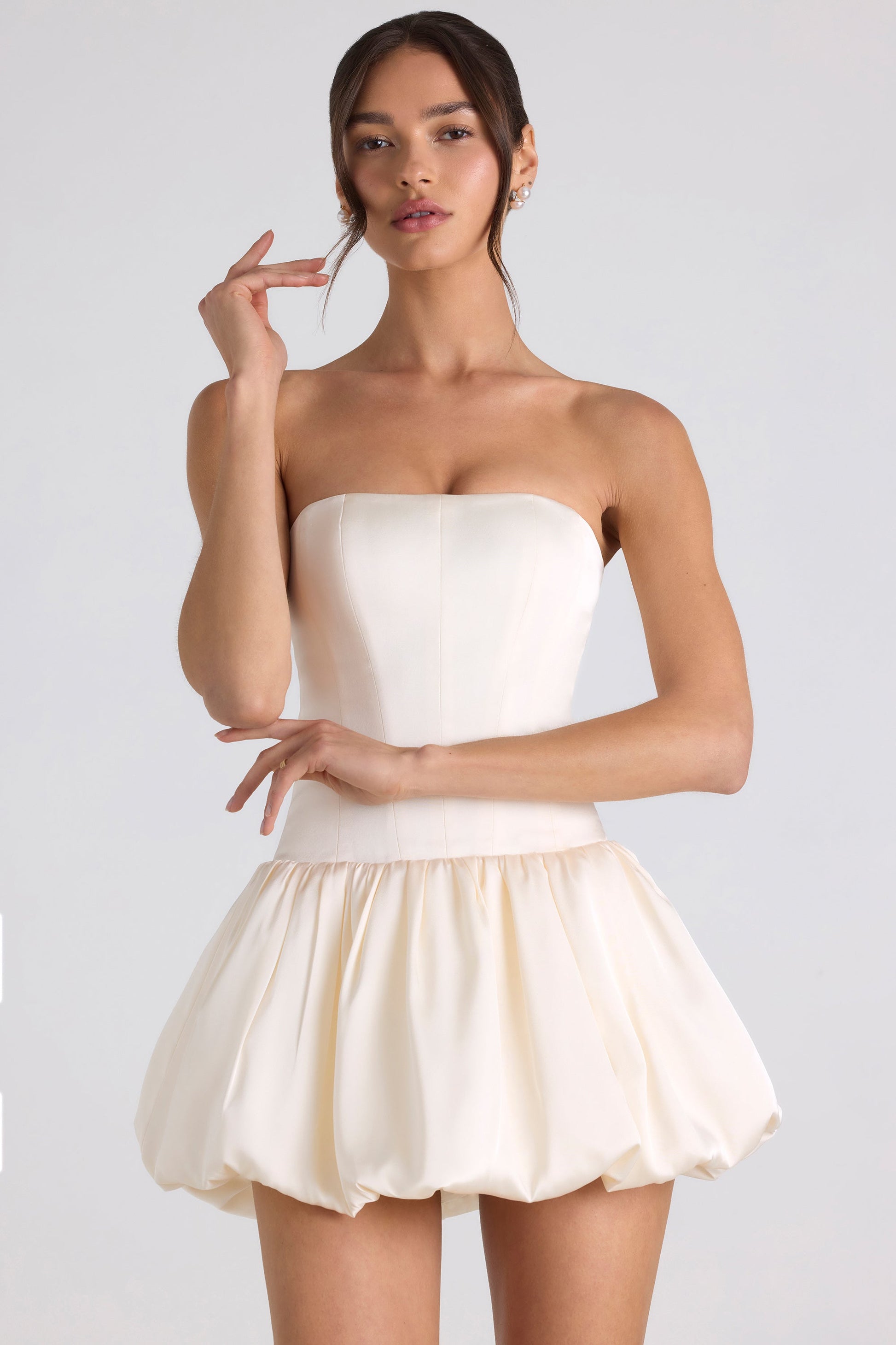 Lace-Up Bubble Hem Corset Mini Dress in Ivory