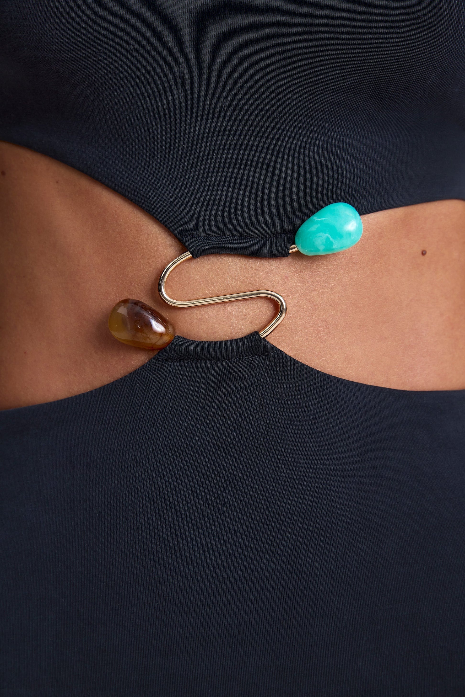Striking silhouettes elevated with custom-developed hardware. Inspired by the sleek look of separates, the Julitta gown comprises a cropped bodice and maxi-length skirt secured with gemstone-embellished hardware at the center. It’s cut from premium sandwashed jersey with a touch of stretch and is complete with adjustable camisole straps for a customized fit.