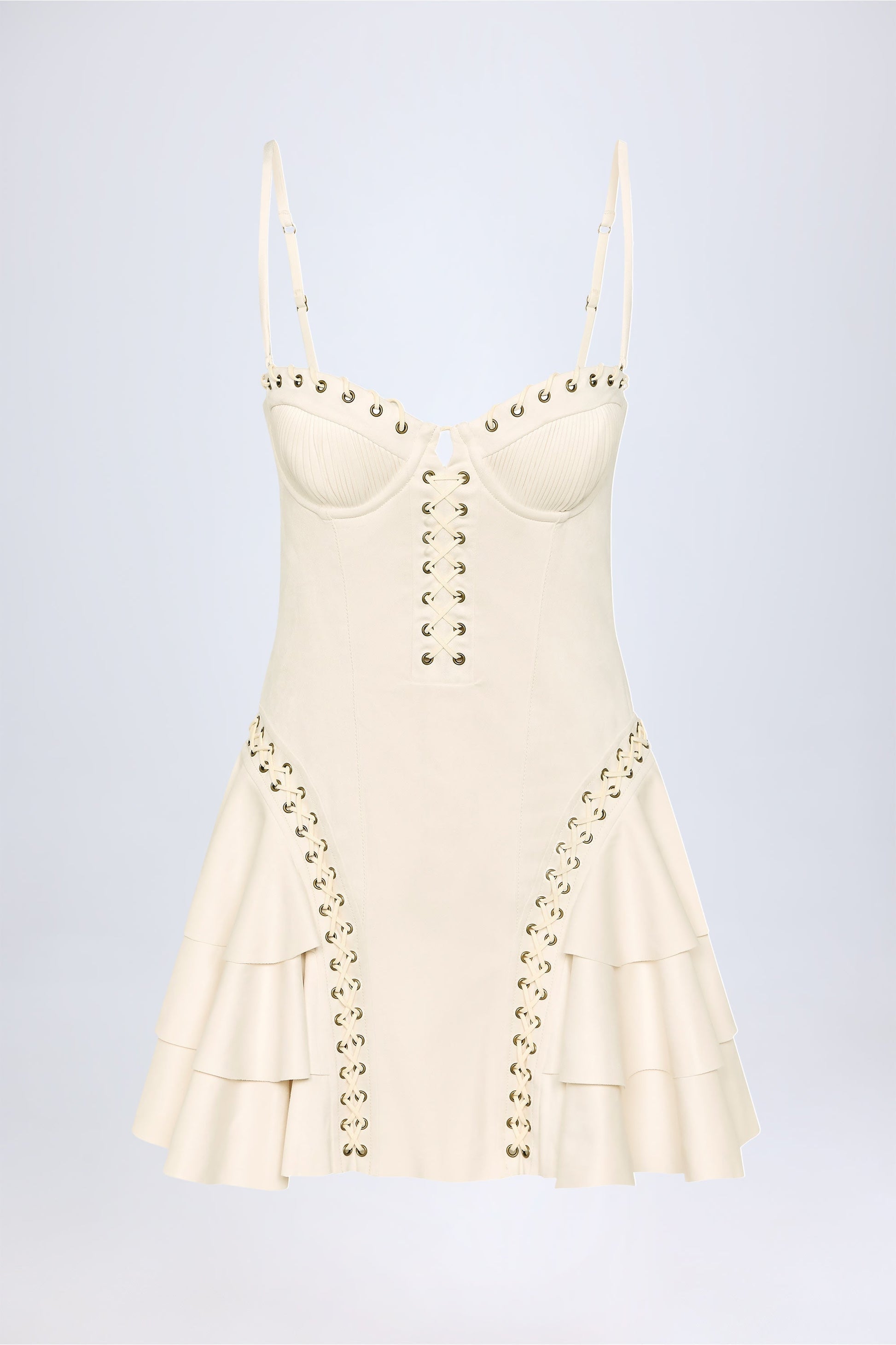 Lace-Up Tiered Corset Mini Dress in Ivory