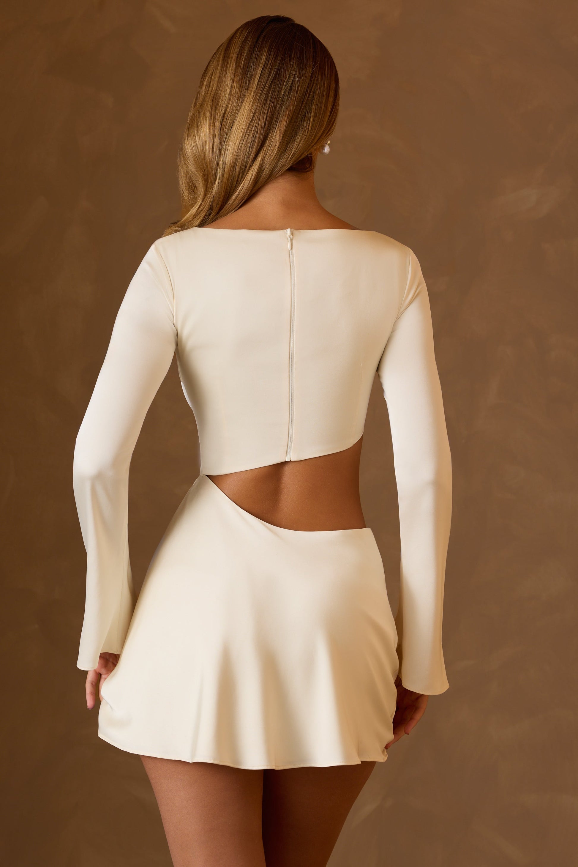 Asymmetric Cut-Out A-Line Mini Dress in Ivory