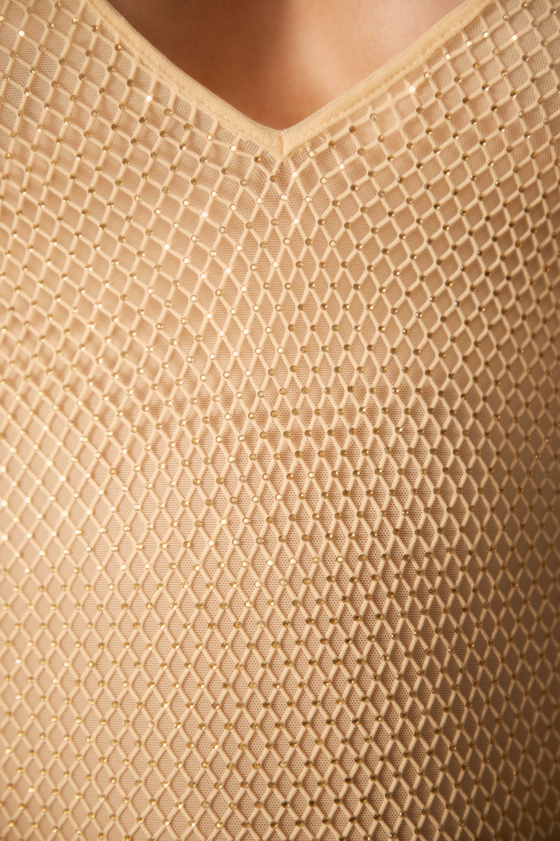 A sexy silhouette cut from our all new stretch mesh and embellished fishnet fabrication, the Lyric maxi dress is a fun and seductive style, perfect for the upcoming festival season. Fully adorned with sparkling rhinestones throughout, this semi sheer maxi dress is tight cut to the body for a seductive, curve accentuating fit that stands out amongst the crowd. With a plunging V neckline and seductive low back, the Lyric maxi dress is complete with a sexy thigh high split that exposes the left thigh.