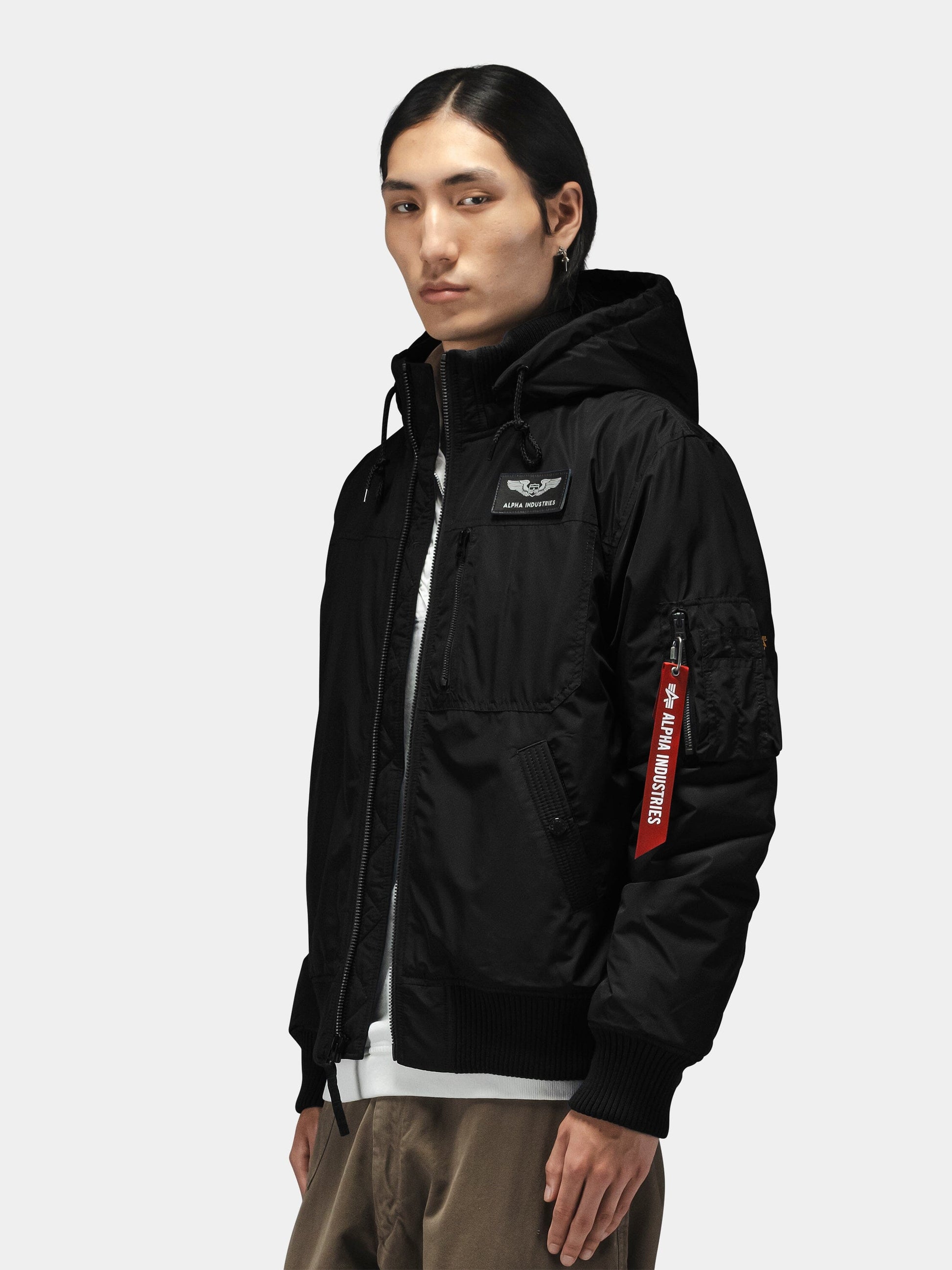 - Utility pocket on sleeve with Alpha red ribbon