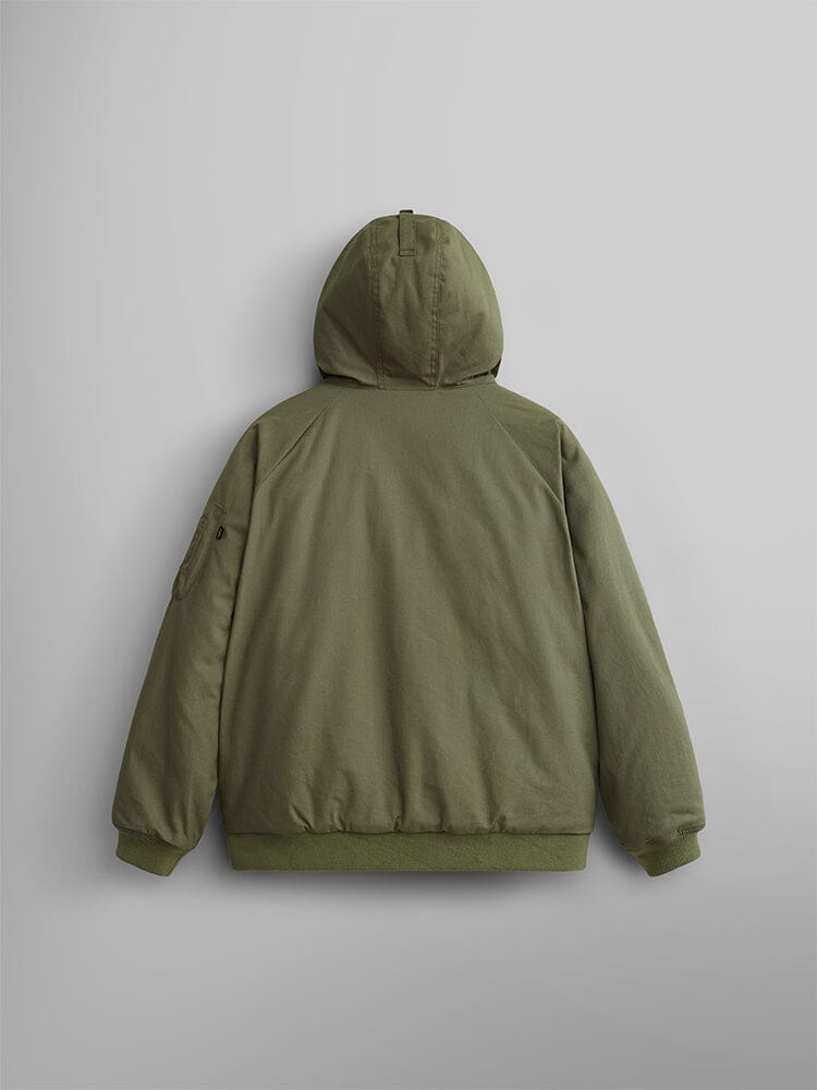 Inspired by ‘80s hunting jackets, this MA-1 mod is optimized for the outdoors. It features a drawstring hood and side entry pockets for full cold weather protection.