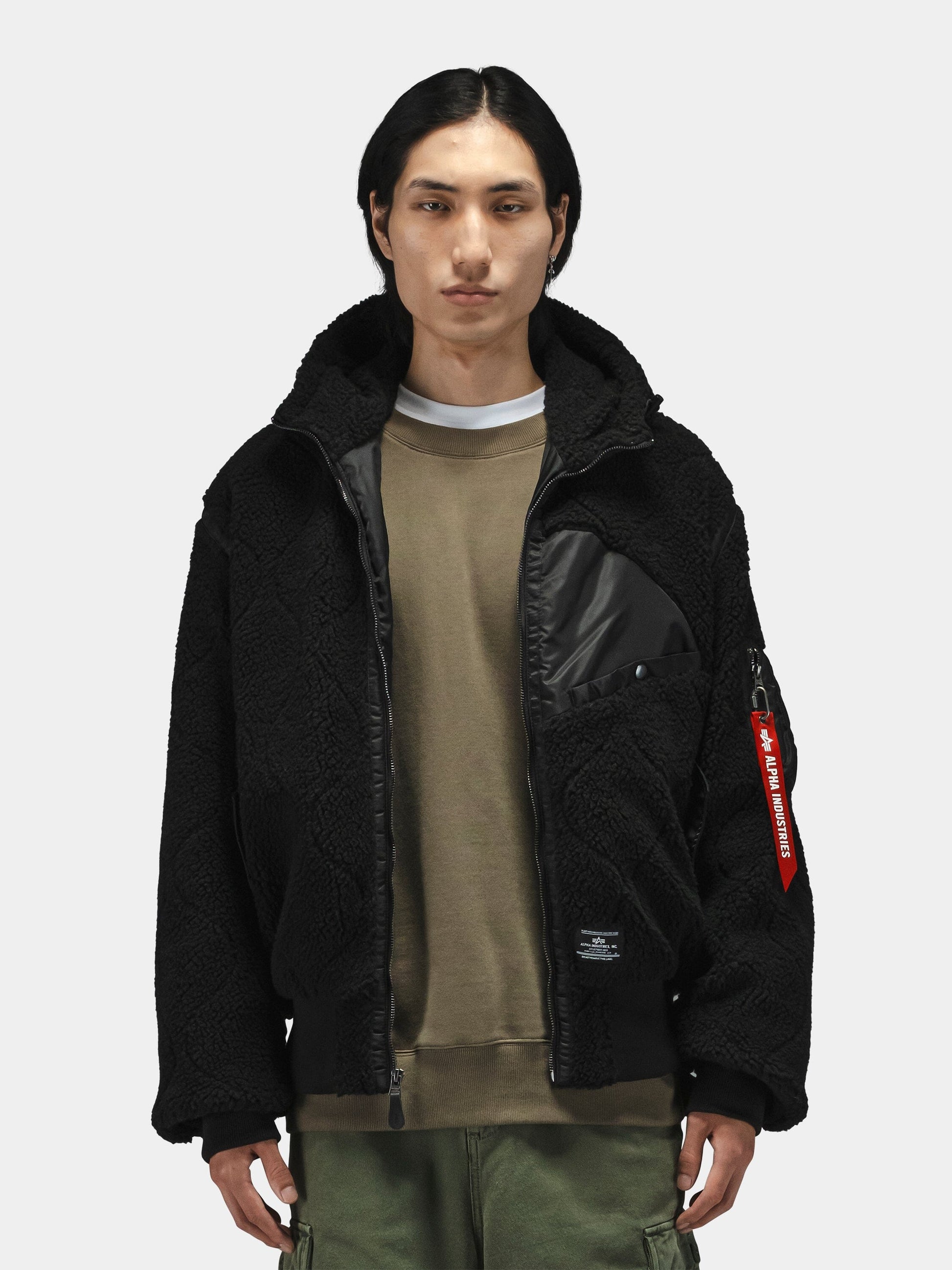 The Sherpa Onion Quilting Flight Jacket reimagines a 1940s fly fishing jacket with modern utility and comfort. Its onion-quilted sherpa shell provides exceptional warmth, while nylon flap pockets and a chest welt pocket offer practical storage. A bungee cord adjustable hood ensures a customizable fit, and the signature utility sleeve pocket with Alpha’s red ribbon adds authenticity. Designed in a relaxed fit, this jacket combines heritage style with contemporary durability, making it perfect for colder days and adventurous wearers.