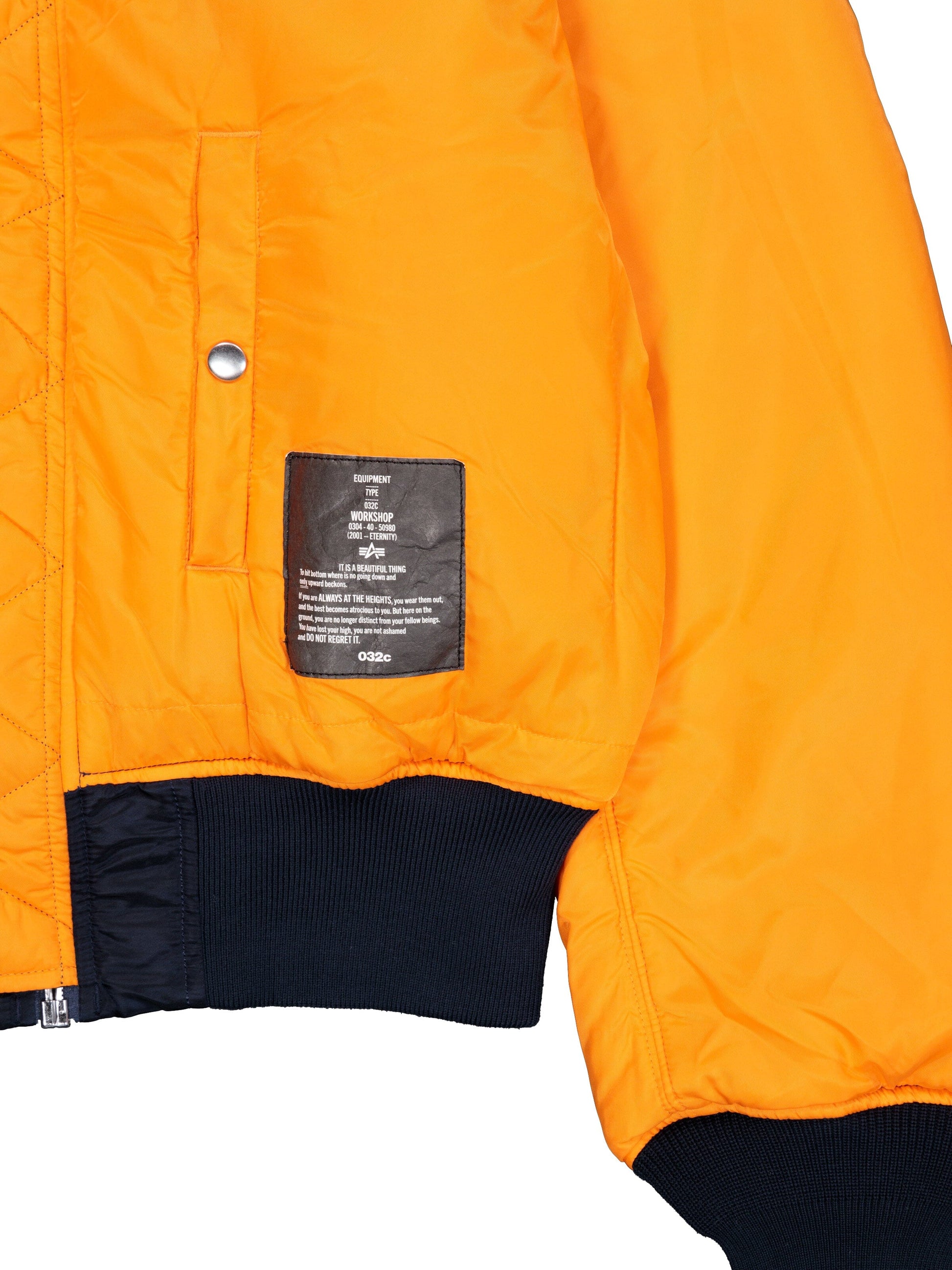 Alpha Industries and 032c proudly unveil their collaboration this exclusive MA-1 bomber jacket, part of 032c's NIGHTHAWKS collection for Autumn/Winter 2024. This jacket reinvents Alpha's iconic MA-1 silhouette through the timeless aesthetic of 032c's NIGHTHAWKS collection, creating an urban uniform built for the city. This collab represents functionality with refined detailing in this unique style.