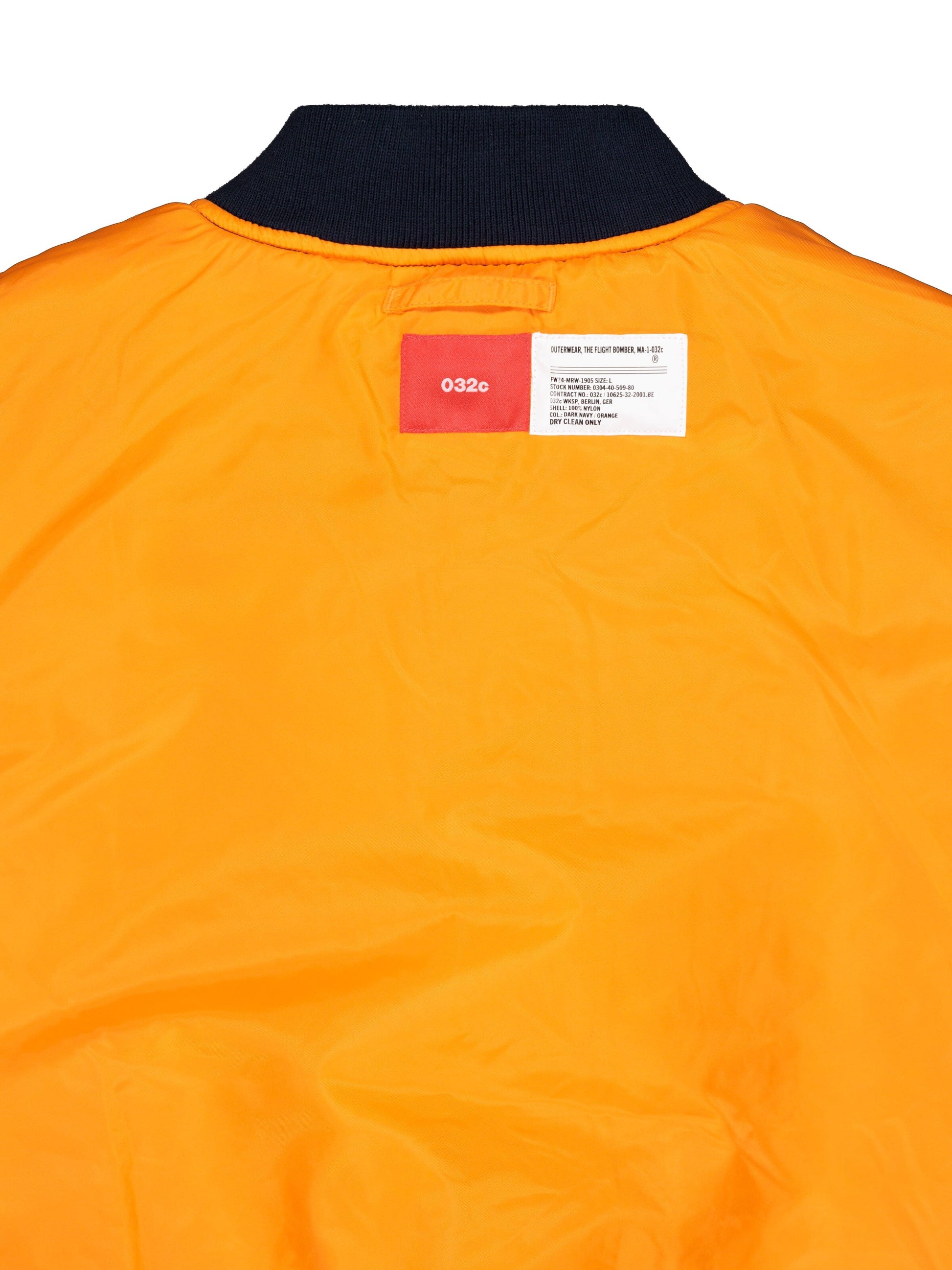 One highlight of this jacket is the versatile velcro patches. On the chest, there is a removeable 032c velcro patch, while the "Night Hawks" lettering is embroidered on the back and can also be removed. These details give the jacket a unique character and allow you to adjust the look to match your mood and style. The reversible option adds even more flexibility - simply turn it inside out to show off the striking orange lining, which reflects a classic military style.