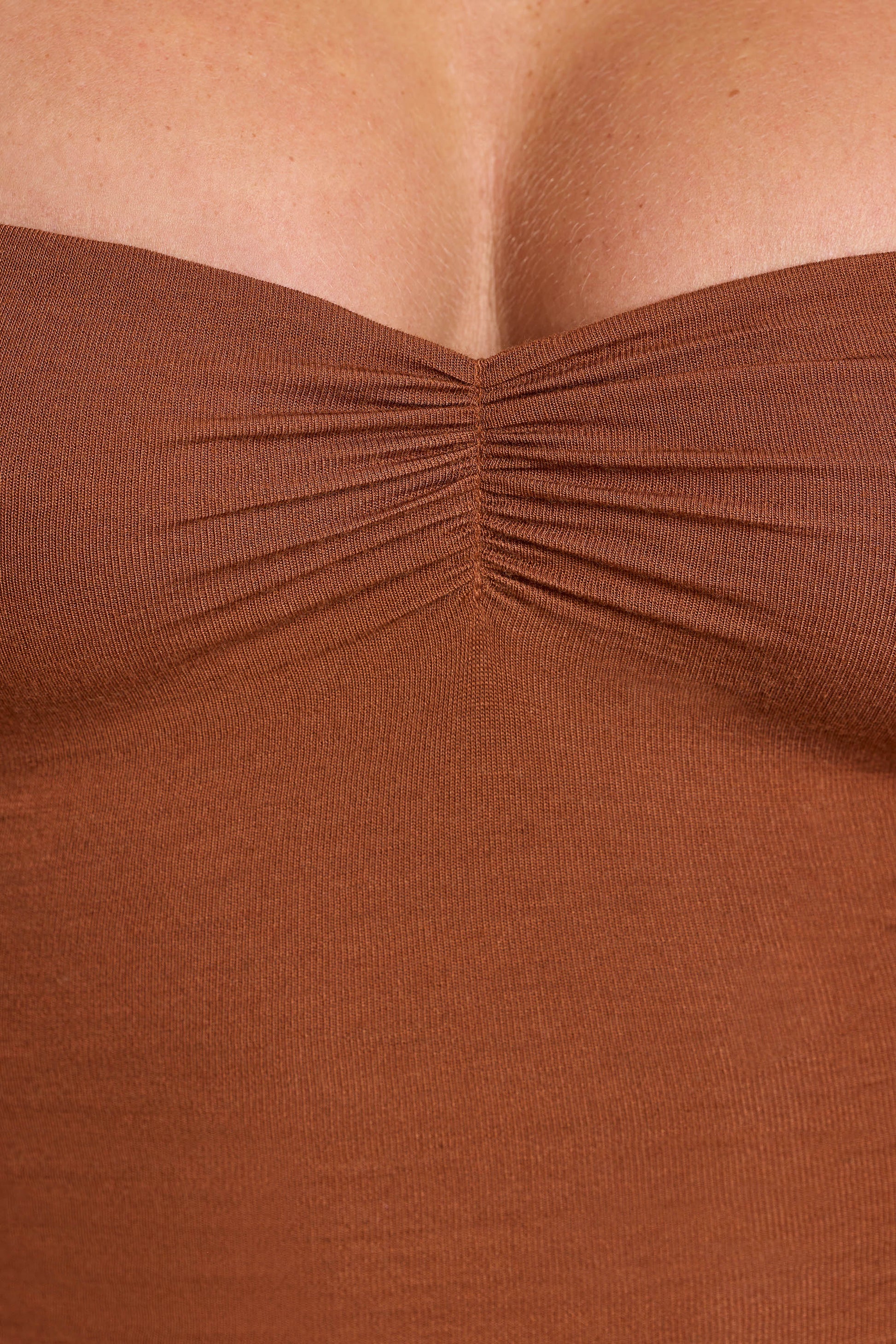Long Sleeve Ruched Modal Cashmere Blend Mini Dress in Chestnut Brown