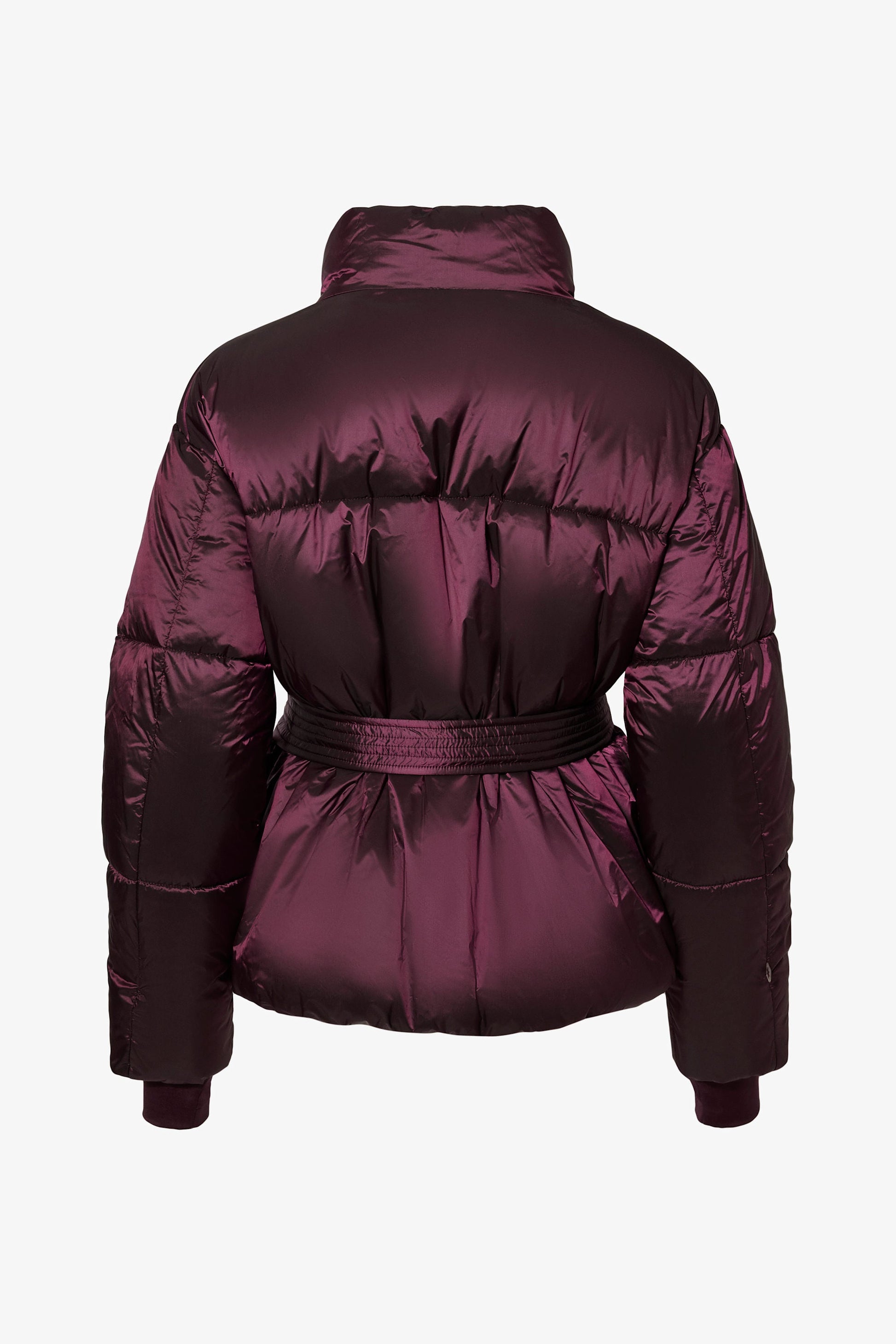 Waterproof Belted Oversized Ski Jacket in Burgundy