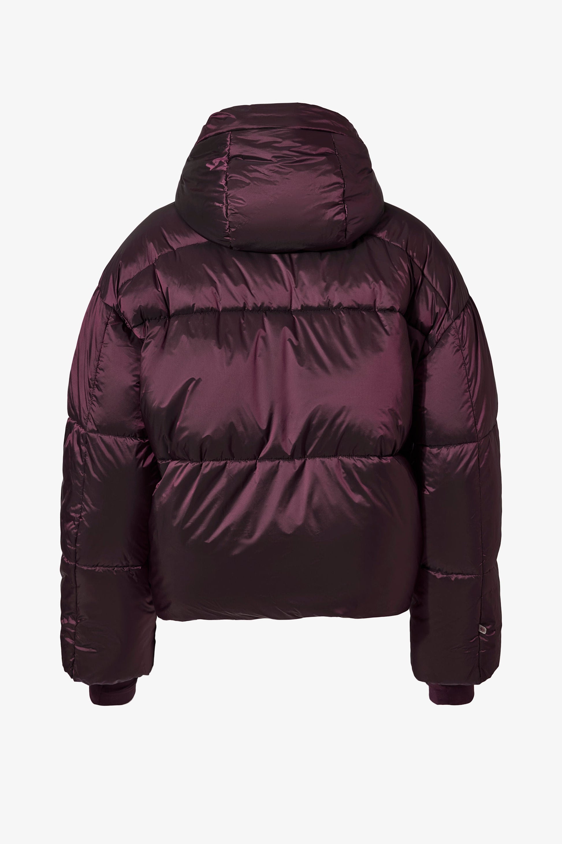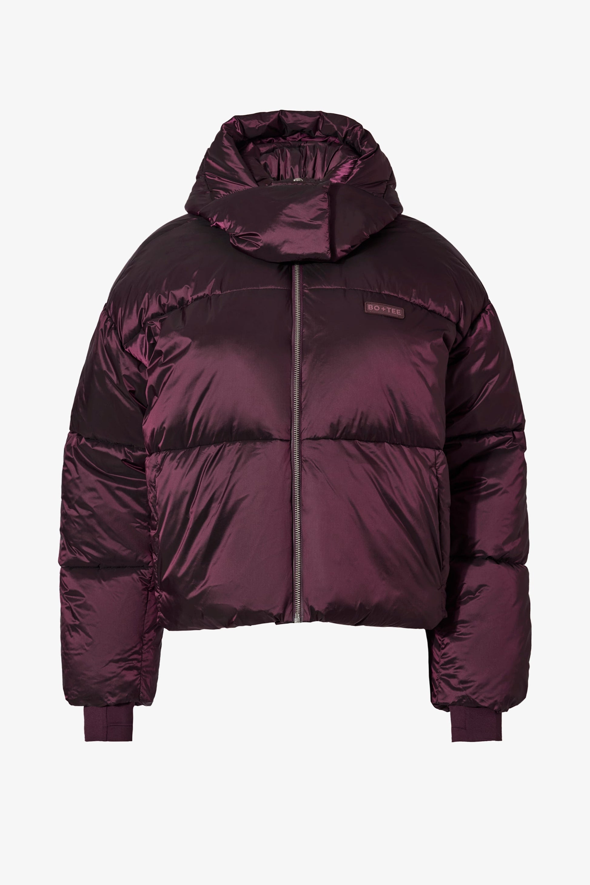 Waterproof Cropped Oversized Ski Jacket in Burgundy